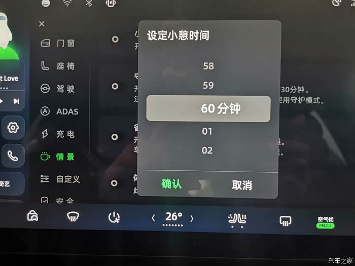 👍小憩模式优点:无需手动去调整座位、关闭车窗和天窗,直接一步到位;在使用时可以打开空调,也不会有燃油车发动机的轰鸣声和抖动感;座椅舒适度强,软硬适中,腰背部有很强的支撑性;不怕睡太久,时间到了,小零会通过柔和的轻音乐叫醒我。