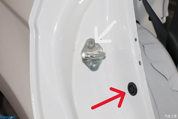 这个开关被隐藏在一个黑色的橡胶套中,当车门关闭,压迫这个橡胶套的的时候,这个开关就打开了,会给行车电脑传递一个信号:我被压住了,也就是表示车门锁好了。当然,如果车门打开了,信号是:车门打开了,仪表板需要给出一个显示“**车门未关闭”。