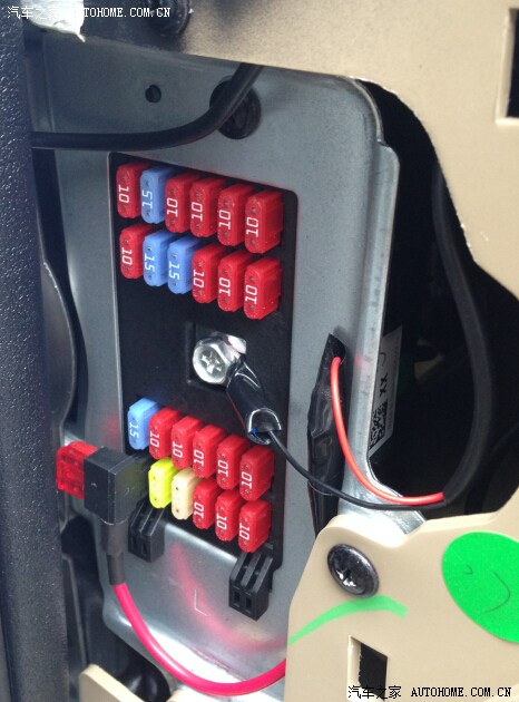 在坛子上找了很多例子,都是12款的接电作业大部分都是从天窗走线,也有从保险盒接线的,但是拆开一看傻眼,和12款的不样的。感谢万能的论坛,感谢“低调DE疯子”的指导。