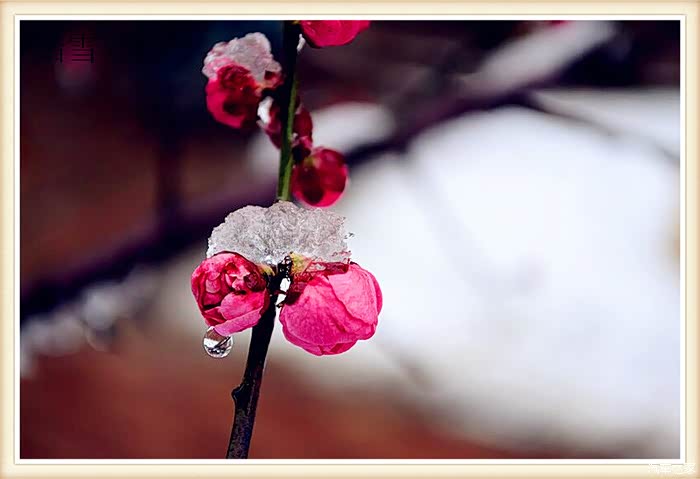 唐代诗人韩愈有诗云:“新年都未有芳华,二月初惊见草芽。白雪却嫌春色晚,故穿庭树作飞花。”这个时候,应该是体会诗人妙笔所描摹出的意境的绝佳时机了。站在雪地里,抬头仰面,伸开双臂双手,任雪花飘落额头面颊和手心,片片雪花抚摸着人的肌肤,瞬间融化后融进血液渗进细胞,和人化为一体,顺手的一束梅花,让人感受到“春雪飞花”的惊喜。