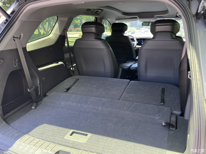 空间是我最满意的地方之一。锐界L是大七座布局,我选的是2+2+3的座椅配置。第二排两个独立座椅,配置挺高的,带扶手,坐着特别舒服,有点像MPV的感觉。这次去民宿,我老婆和孩子就坐在第二排,一路上都说很舒适,腿也能伸展开,不像以前坐车时间长了就觉得累。第三排的空间也还不错,偶尔应急坐个成年人短途没问题,比很多同级别的七座SUV要强。平时如果不需要坐那么多人,第三排座椅可以放倒,后备箱空间就非常大了。