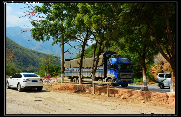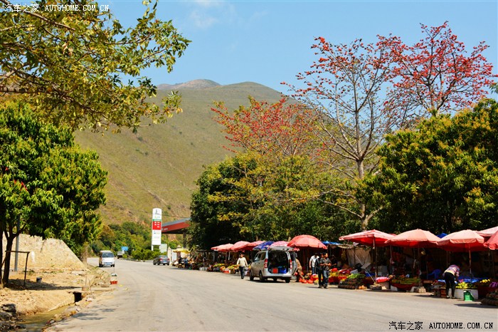 25,我在这里停车,一开始,是因为看到了木棉(攀枝花)树开花了。后来一看时间:快中午12:00时了,就临时决定在此用餐;反正前面几公里就到冷镦了。那里摆摊的,停车买东西的,乱糟糟的,我很不喜欢。。。。。。