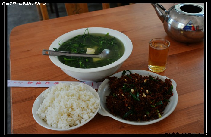 32,我一个人,就点了一盘凉拌的山毛野菜——树花,一碗豌豆尖豆腐汤,一碗饭;一共40元。