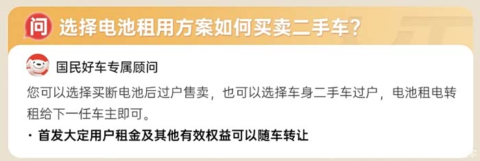 同时,选择电池租用,首发大定用户租金及其它有效权益可以随车转让。