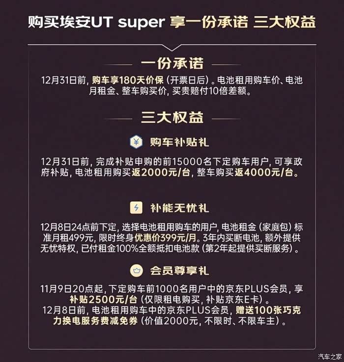 总体上来说换电政策是更倾向于让你选择用电池租用的方式来购买车辆的。