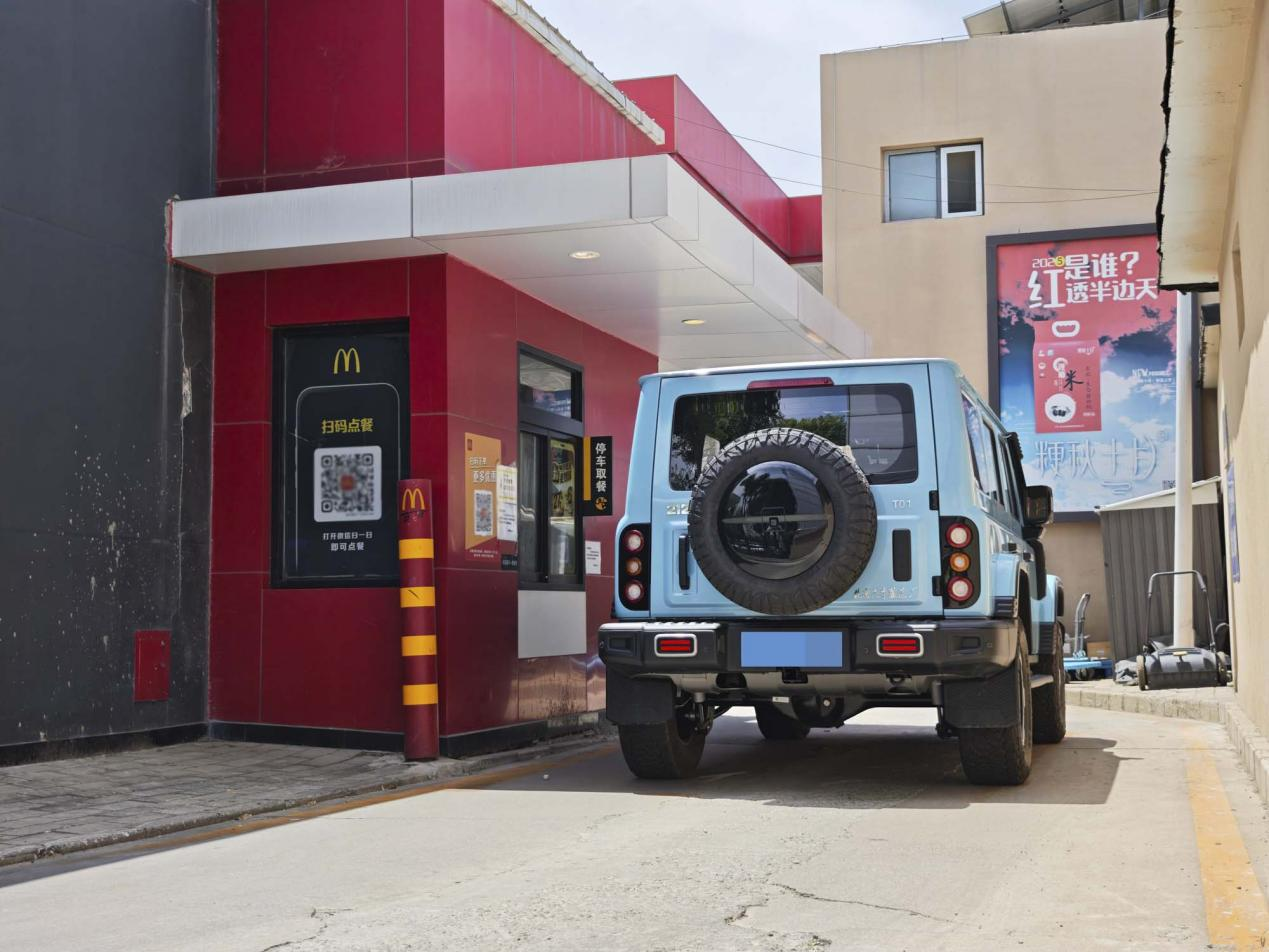 为了保险起见,我先拐去加油站补满油,旁边正好有家麦当劳,顺手买了个早餐,而且这里是可以停车取餐的,很方便。我不得不说这车是真高,视野比普通的SUV好了不止一点,有一种一览众山小的感觉。