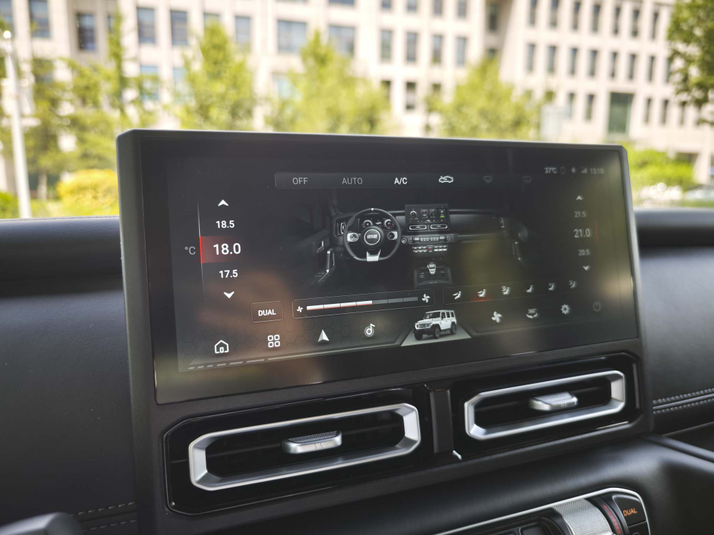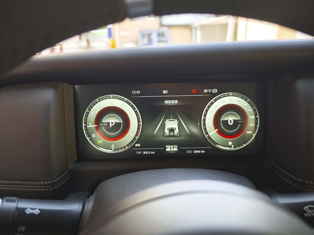 讲真,这车真的有点打破了我对硬派越野的糙汉印象,坐上车的时候能感觉到屁股下软软的,座椅很舒服,然后中控台是T字布局,大尺寸的仪表屏和中控屏,应该算是车内比较能代表科技感的部份,里面功能挺多的,车机操作也比较流畅。不过,那一堆控制键我倒是喜欢得很,空调、驾驶模式、陡坡缓降、防滑系统、驱动模式、差速锁……都有各自的控制界面,比起屏幕触控来说,这般机械感十足的布局用习惯了基本可以盲操。我都已经迫不期待想上路试试这些功能了。