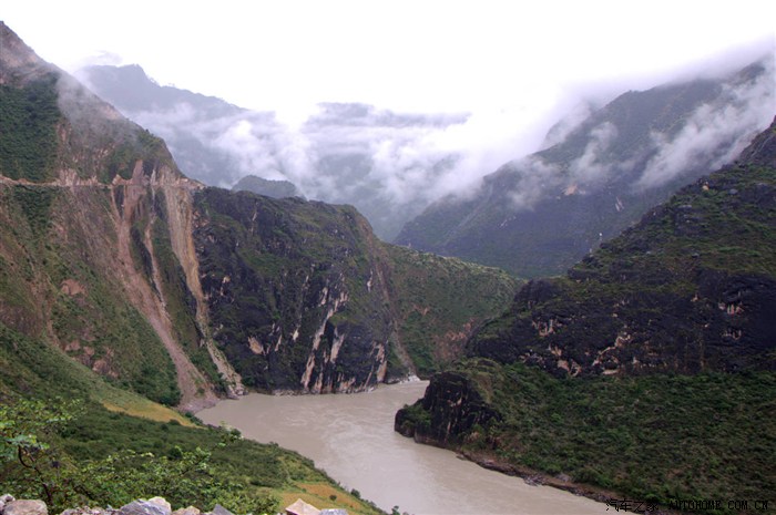 14.32分到达怒江第三弯,实际上这第二第三弯就是一个大型的连续弯。平看第三弯此时所处的位置基本与雾霭齐平,悬崖险峻自不必说。