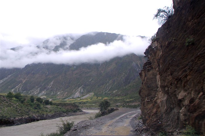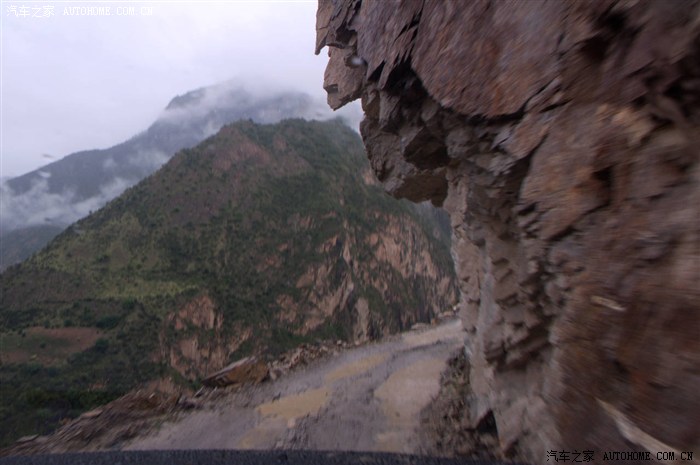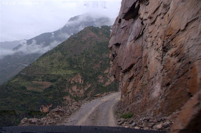 稍息片刻又得前行,开凿在山腰的路依然险峻。