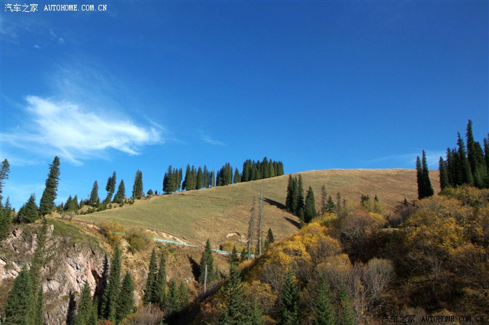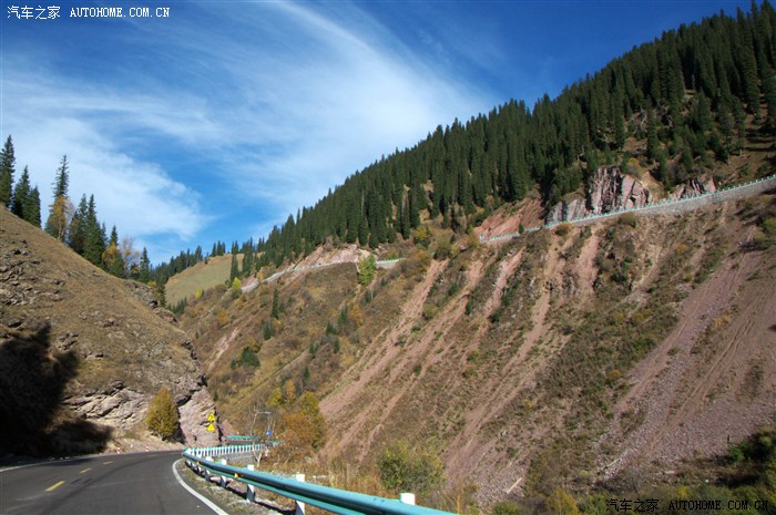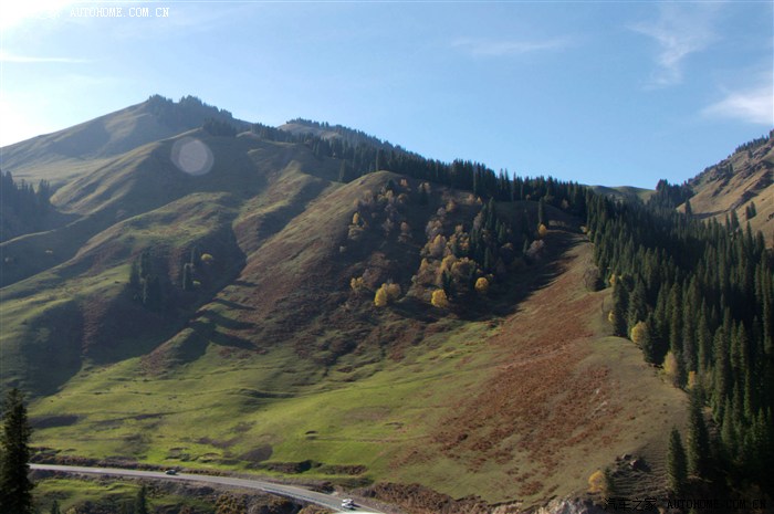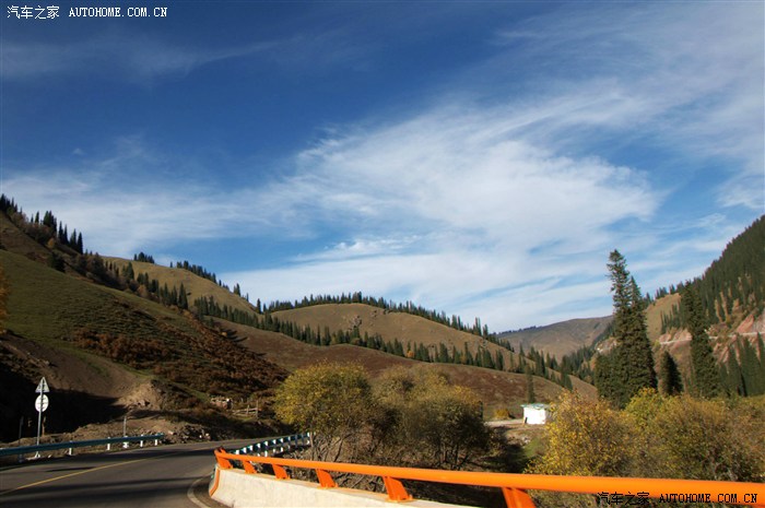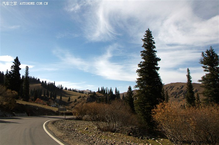 过笫二根鸡脚趾下山往那拉提的路旁,满目皆是云杉的世界,颇有那么一点阿尔卑斯山的味道。