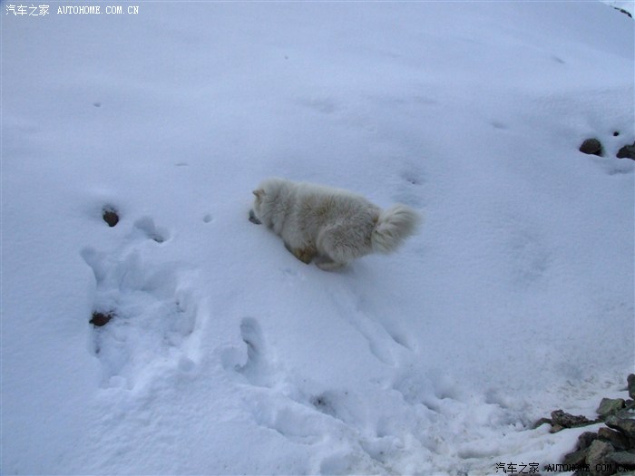 经批准,“白雪”跳到雪窝里立马变成了“黑雪”!不知深浅的它以为就像平时跑平地一样,结果跃到雪窝里立马感到不妙。