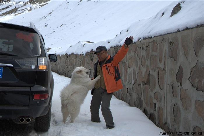 下车探探路边积雪的深度,我家狗狗却跳起来扑我,我明白它是想到雪里玩一会。