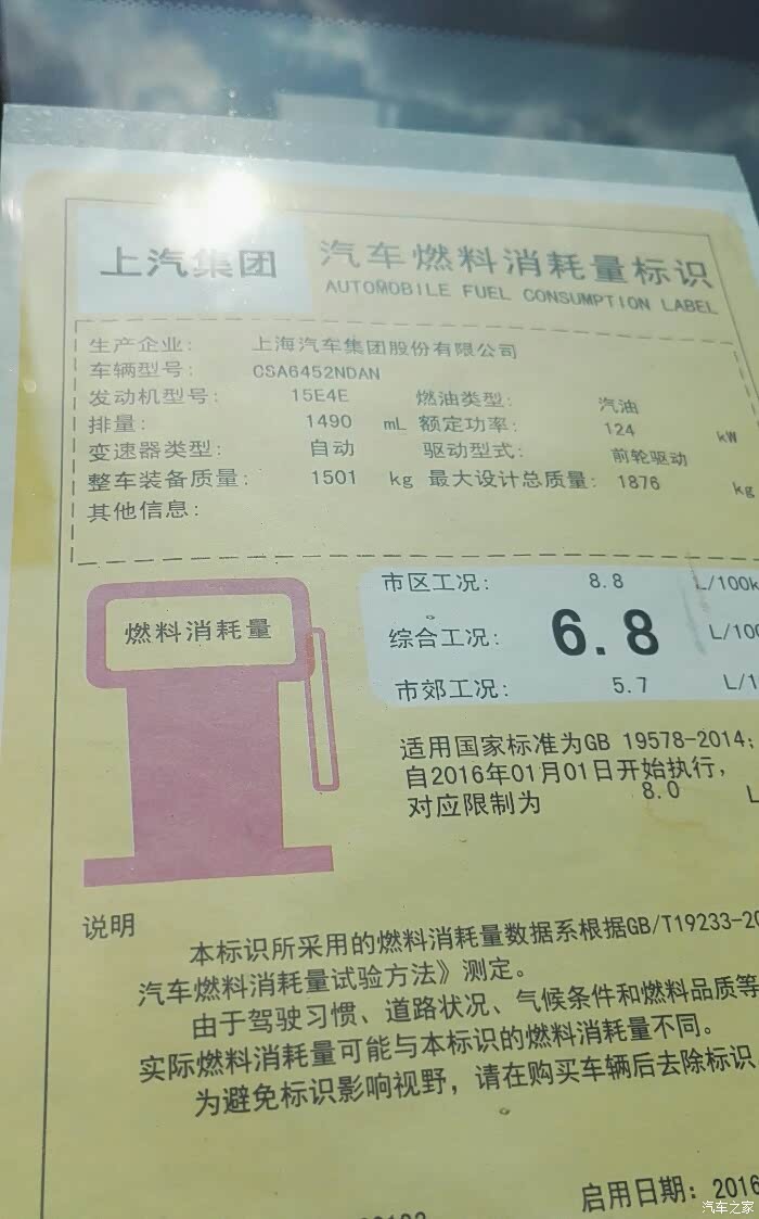 油耗说是6.8,如果有7.5以下,我都给五星好评了