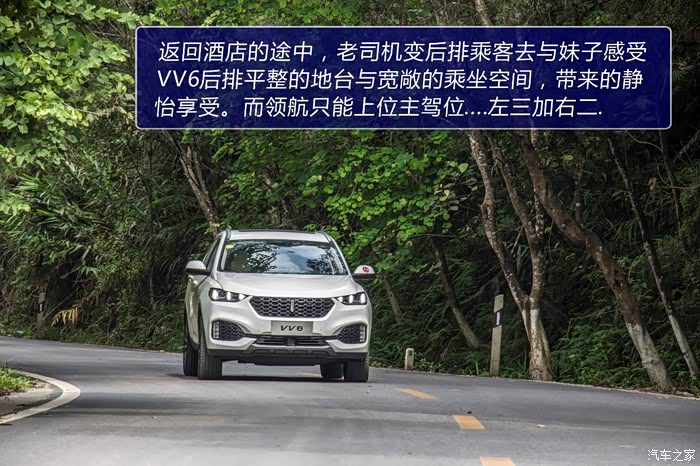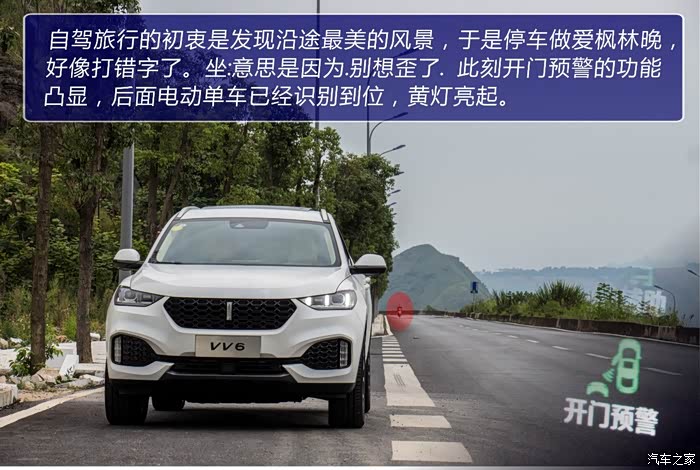 一路行来,VV6的外观已经深深烙在自己脑海中。除了颜值,有句话怎么说:外观很帅,内外都很豪华。四驱是必备,但智能更是亮点,包括了ACC自适应巡航和包含了FCW、EBA、AEB三项功能的预测性紧急制动系统PEBS商务部分20项的智能驾驶辅助功能。一路向东,出四川进贵州再到广西、广东,VV6智能驾驶辅助一路伴行,为旅途行车多了一份安全保障。总之SUV车型不仅是全家出游时翻山越岭的首选,更是日常出行城市代步的忠实伙伴。##