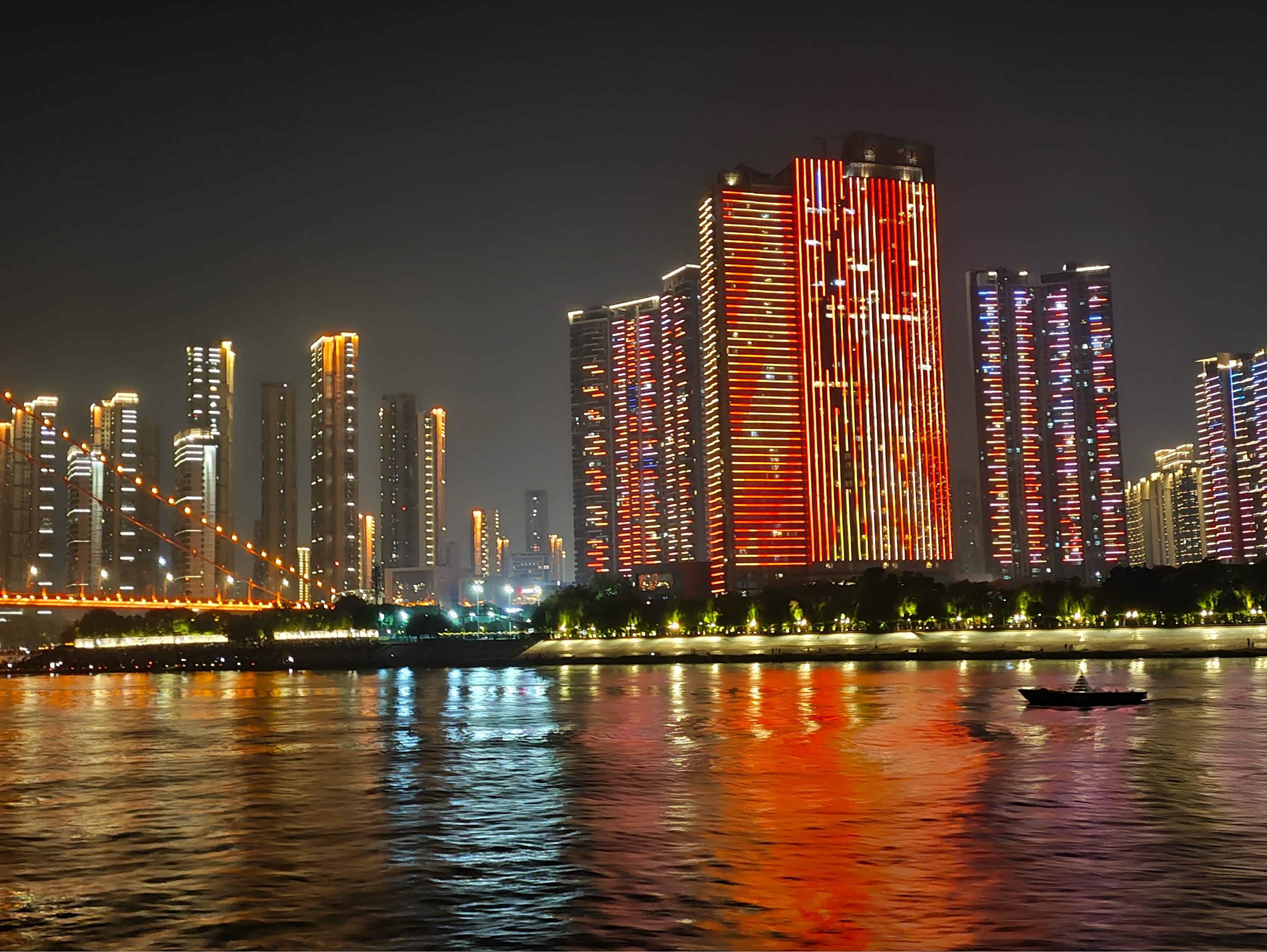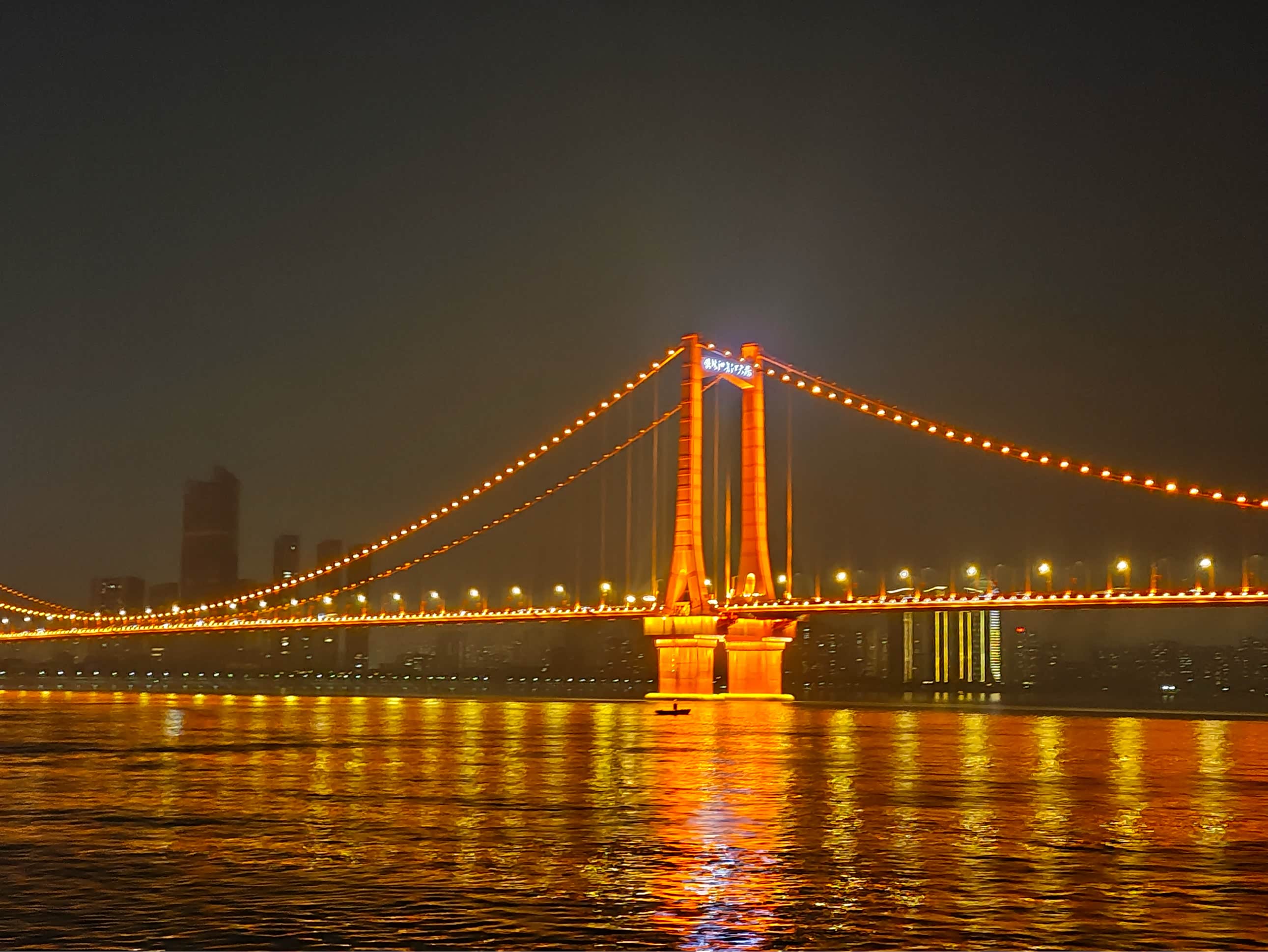 傍晚时分,吃过晚饭,我们开着蓝山前往码头,准备乘游轮夜游长江,武汉不愧号称东方芝加哥,两岸的灯光秀美极了。?