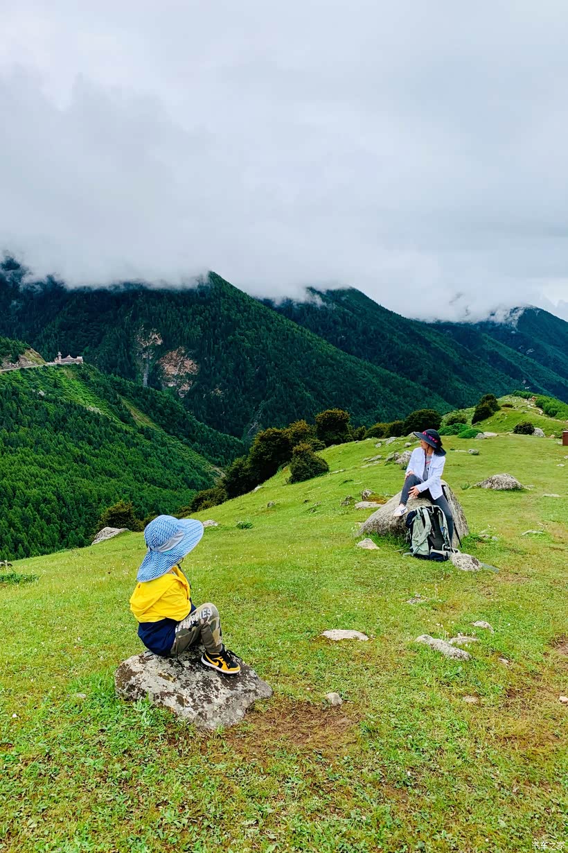 我们11:00开始徒步,经过海子沟景区入口处、斋戒坪、锅庄坪,到达朝山坪。单程仅3公里多的路程,虽然有栈道,但因一路都是上坡台阶,垂着高度从3200米直接到3633米,所以对小朋友还是很有挑战。后来看远处已有乌云,风也很大,便转头下山,于14:40回到停车场,刚上车外面就开始下大雨,幸好。