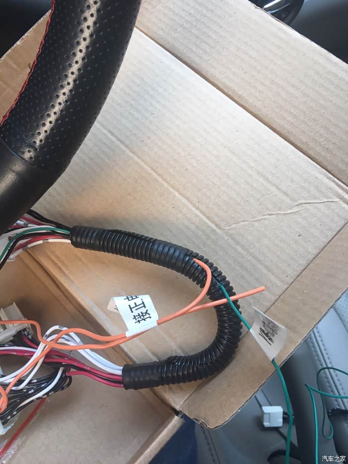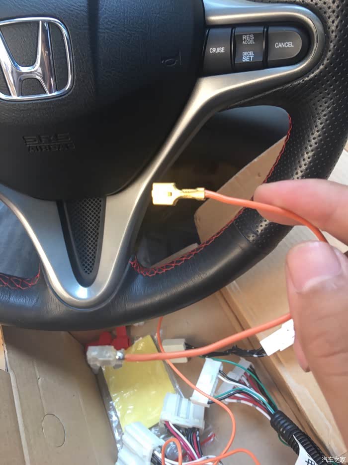 那个橘黄色的线接12V电源,那个绿色的中控马达线卖家已改装好插头,直接在原车插头对插就行(我搜索以前的资料都是破线安装,估计改进了)