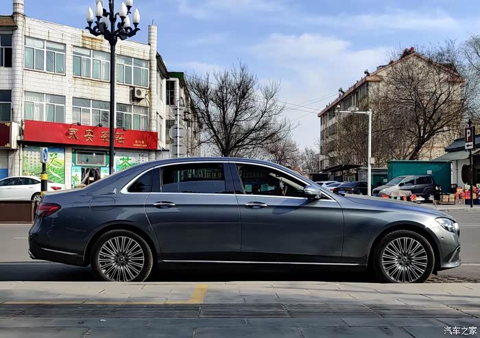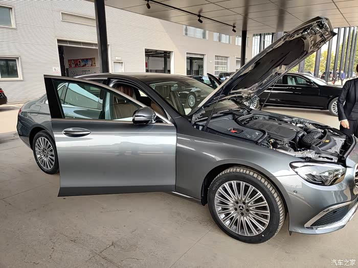 晚上不死心跟路虎小哥沟通定内饰无果,媳妇一咬牙奔驰内饰好看就在GLC和E选吧,还能省点钱,嗯,女人嘛奔驰的内饰有几个能不中毒的,依我的星脉定不到,可以要捷豹的F-PACE,就跟星脉内饰不一样,不到40万,多合算。后面媳妇和家里人又去奔驰看了一次,刚好来了台月光石灰,当时没注意配置,媳妇一眼就看中了,事业还开轿车好点,就pass了GLC300,虽然后面价钱还便宜几万,新E没啥优惠,媳妇给了2万定金,既然定了,让我把把关,网上看了下各个车型的配置找了个时间去了趟,确实外形配上这个颜色顺眼很多,加上我们不喜欢黑白车,基本中意这个了,后面跟销售一对配置,时尚版,没有柏林没有电尾,没有几何大灯,