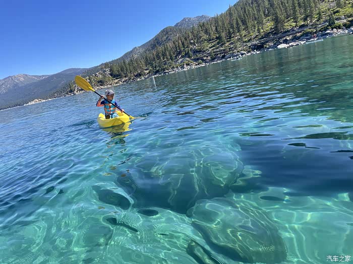 第三天从Convict Lake 出发前往Lake Tahoe。Lake Tahoe成为加州最美的湖。它不仅透明,而且整个湖的颜色是淡绿蓝的。加上里面有很多巨大石头,让它的观感很特别。在Lake Tahoe里面最漂亮的应该就是这个Sand Harbor了。这里平时只要超过9点以后停车位基本都满了。所以想去Sand Harbor的朋友,一定要早起来,开到这里取。