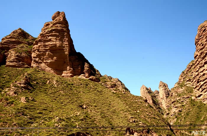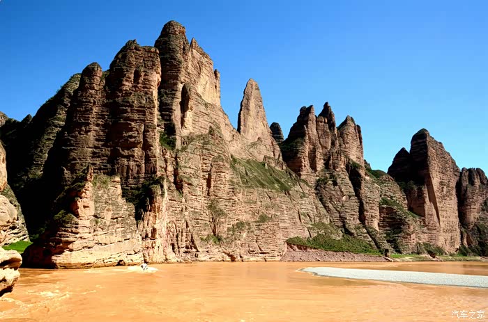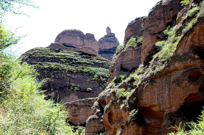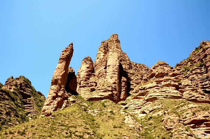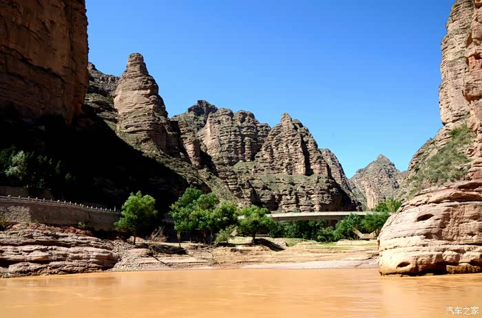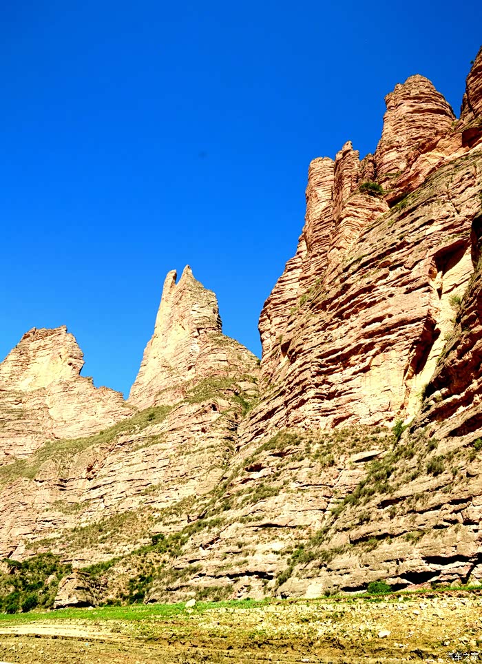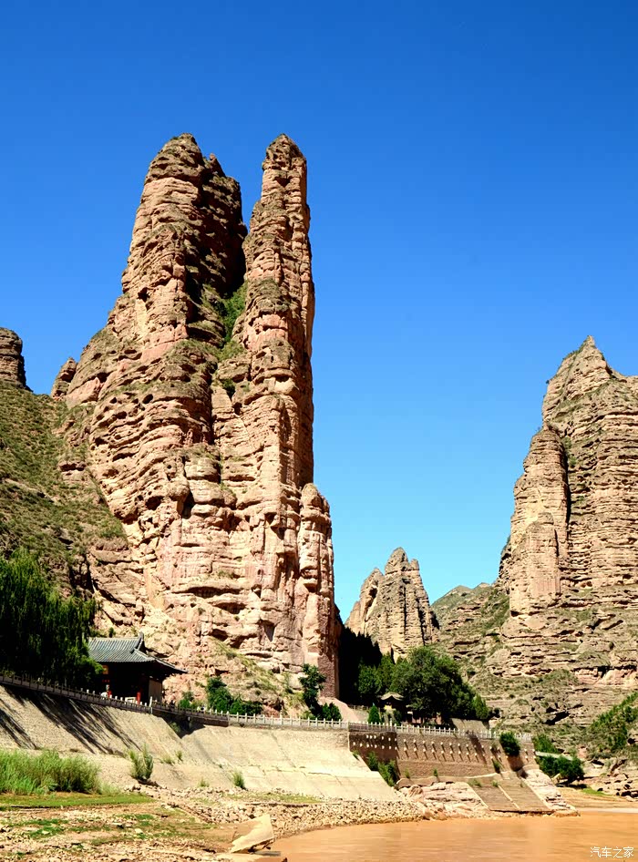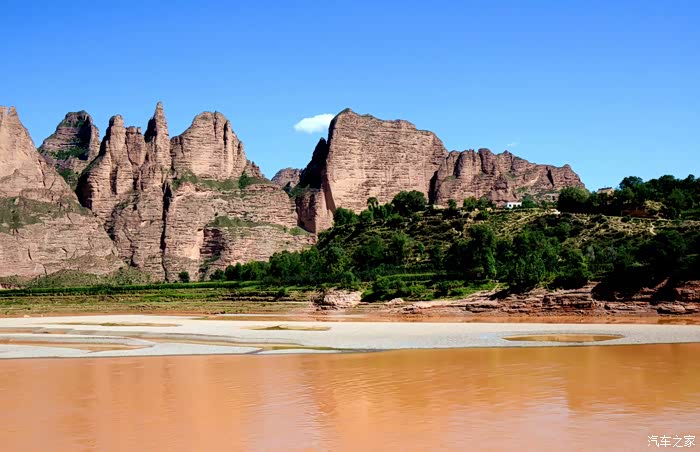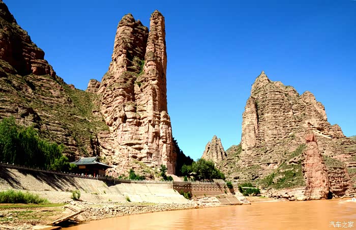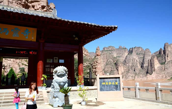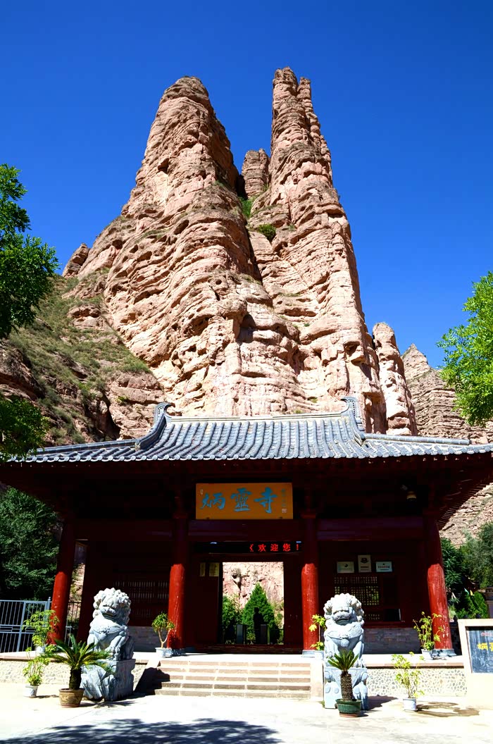 碧水与黄土山、黄土山与蓝天、只种感觉只有刘家峡才有。黄河干流向上、便进入了柱形风化的、石英沙岩构成的磷峋地藐区、有点像石林、但要高大的多。在这片石丛中隐藏着一座炳灵寺、它是凿空一座山而建的、有一个几十米高的大佛、其中更珍贵的是几个唐代和北魏时期的石窟。
