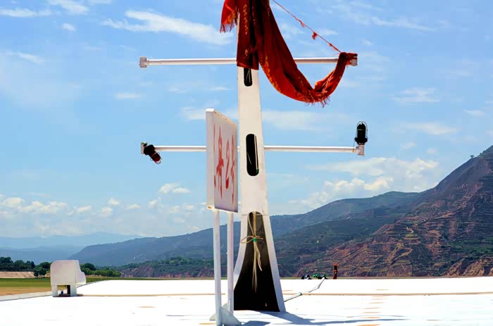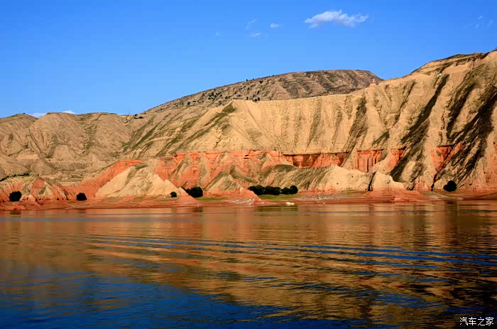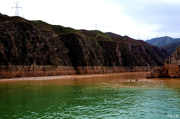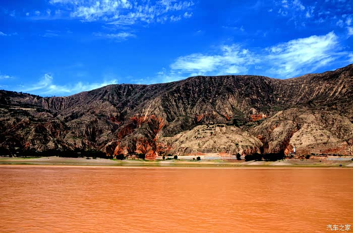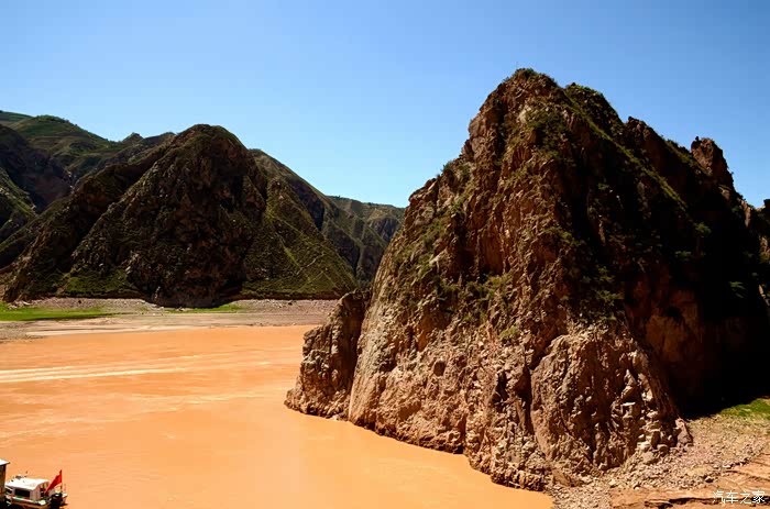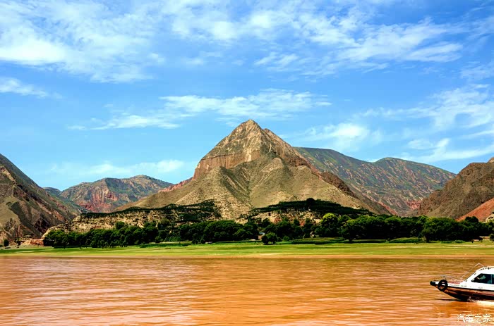 我们乘船溯流而上、入峡时可见两岸奇峰对峙、笔立千仭可与桂林山水比美、刘家峡景色多变、出峡谷后眼前便是高山湖、湖水荡漾、别一番湖光山色。刘家峡水库是黄土山怀抱下的一汪碧水。在库水尽头便是洮河与黄河主干流的交汇处、远远望去、有一道蓝色与金色的分界线、洮河来之甘南青山中、而主干流已在黄土高原走了一段路,回头望、会看到同样二道分界线。