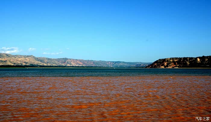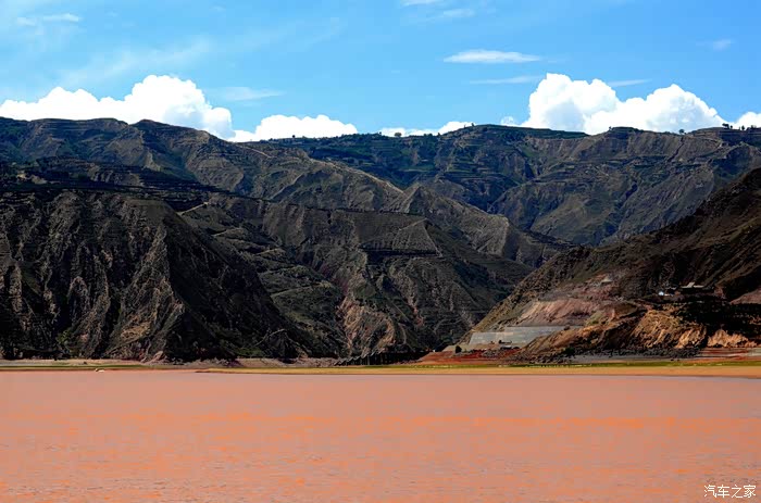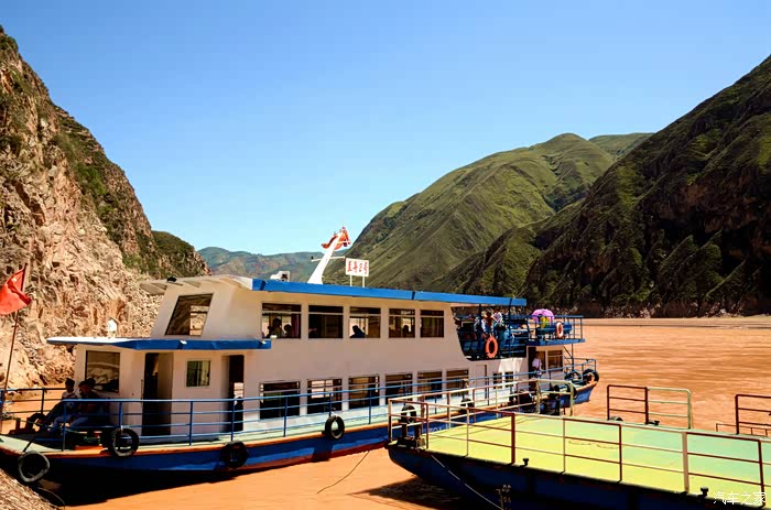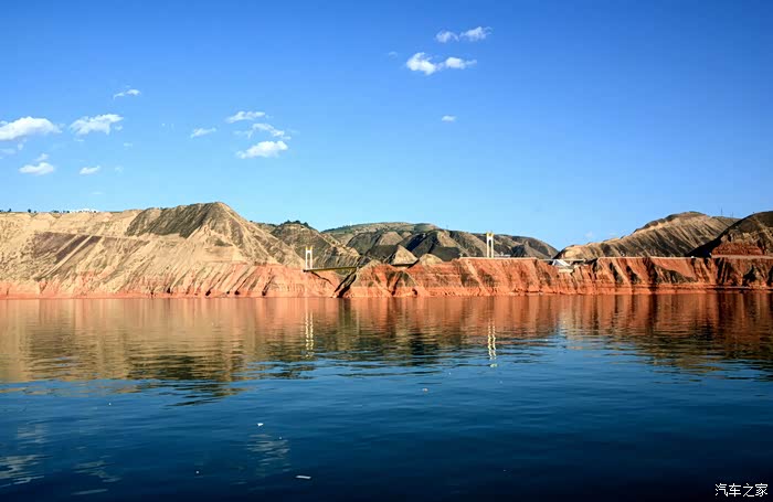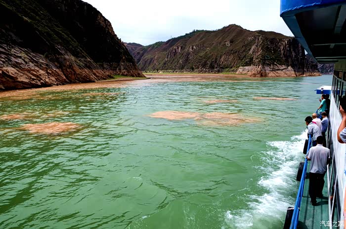 从大坝乘船、驶到洮河口、携有大量泥沙的洮河水注入水库、立即与清澈的黄河水形成泾渭分明的两股水流、但浊流很快被清波呑没、这也是一个奇观。