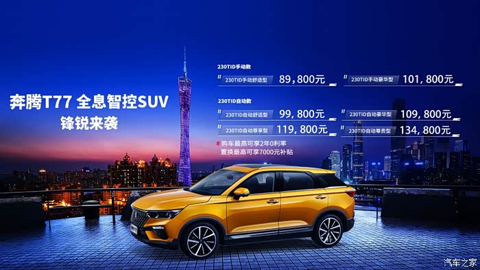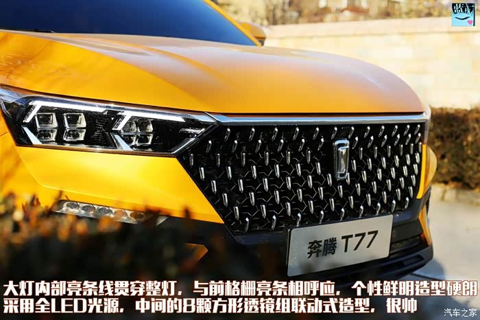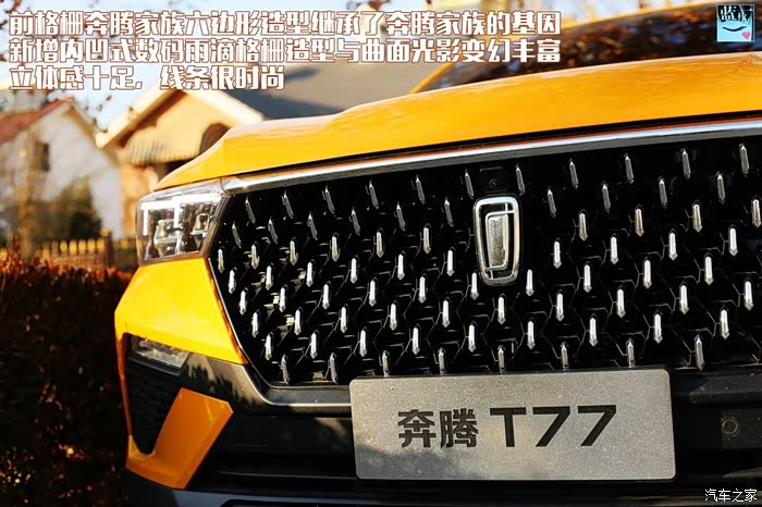 作为奔腾车系中最具颠覆性的一款车,奔腾T77的名字来源是有说法的:“T”和“77”都是最具棱角的字母和数字,这正好呼应了整车“光线折学”的设计核心。