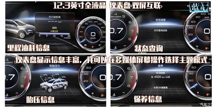 比如:整车6安全气囊;车身结构采用3H骨架设计技术;Bosch ESP 9.3代系统,实现:前方碰撞预警,道路偏移预警,智能远光控制等功能;配置直接式胎压监测系统