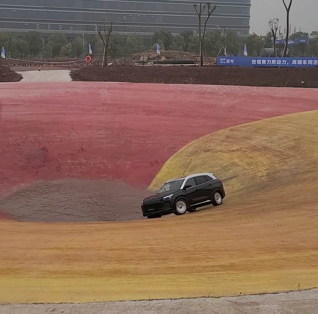 《网红涮大锅》对车辆的动力储备和动力响应都有很高的要求,这口大锅的倾斜角度得有三四十度,而且是湿的,如果四驱不给力会打滑,如果动力不足也侧滑,如果速度上不去离心力太小车重又比较大也会滑到锅底,而四驱版蓝电在这口锅里可以说是游刃有余,整个感受一点也不勉强,入锅和出锅都稳如老狗,网上应该有视频,大家可以搜索见证!