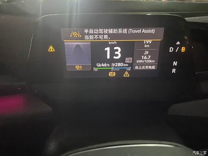 ? 掌握动能回收技巧:在 B 档模式下,车速达到一定速度后,轻抬一点电门,观察仪表盘上的能量回收绿色条会加长,表示已开始动能回收,全部松开电门,动态绿色条会拉得很长,动能回收效果更明显,但车速会不断下降。