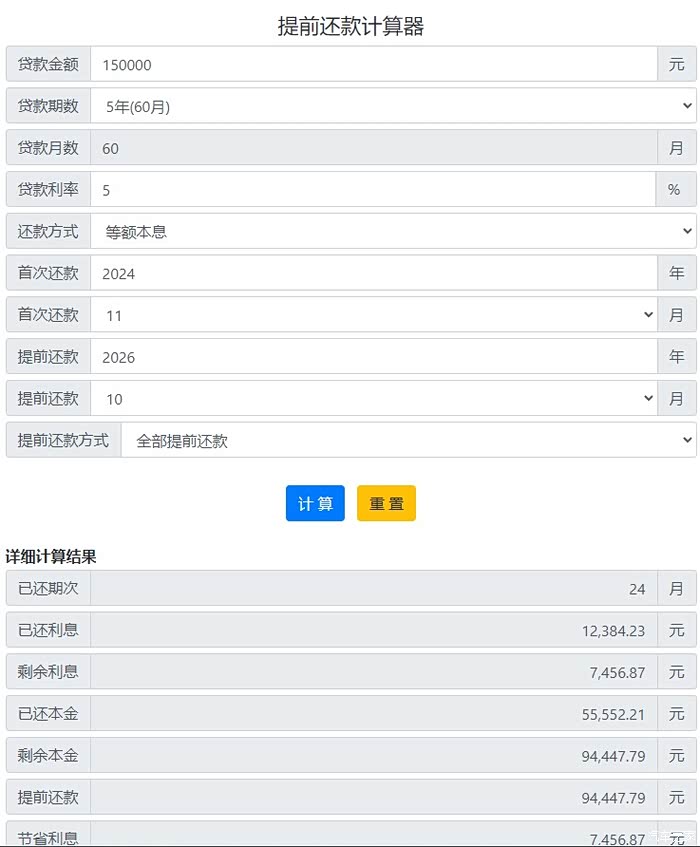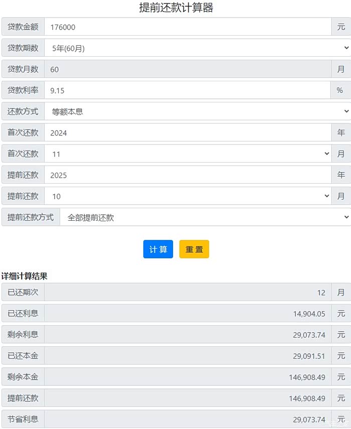 第二年提前还款实际付出:
