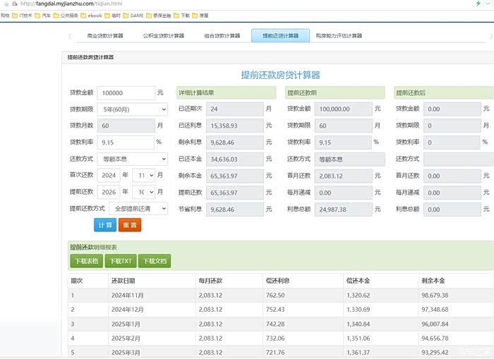 2年、3年提前还相差9083,