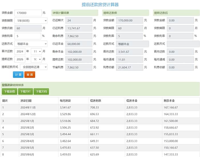 1年、2年提前还相差12124,
