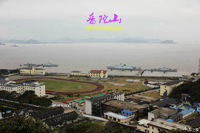 出观音洞,往盘陀石方向,舟山军港一览无余。上山前经过门口还标注是军事重地严禁拍摄,到了山顶就可以随意拍了。