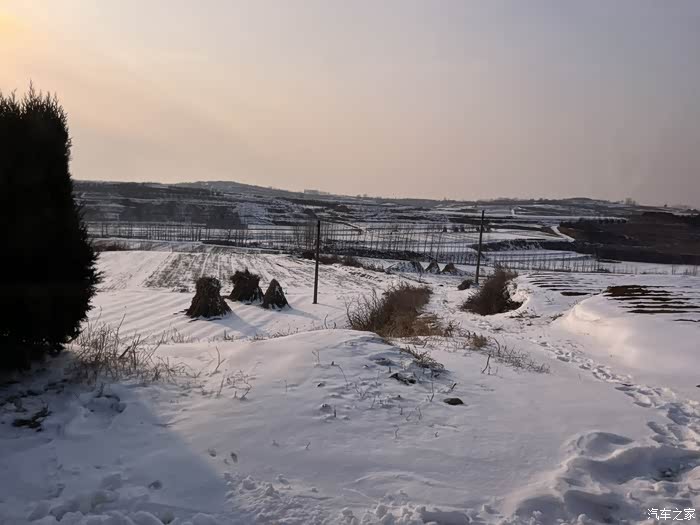 乡镇的路上明显雪大一些,也可能没有专业除雪吧,我开的车速度慢了下来
