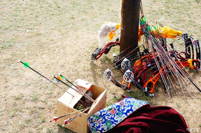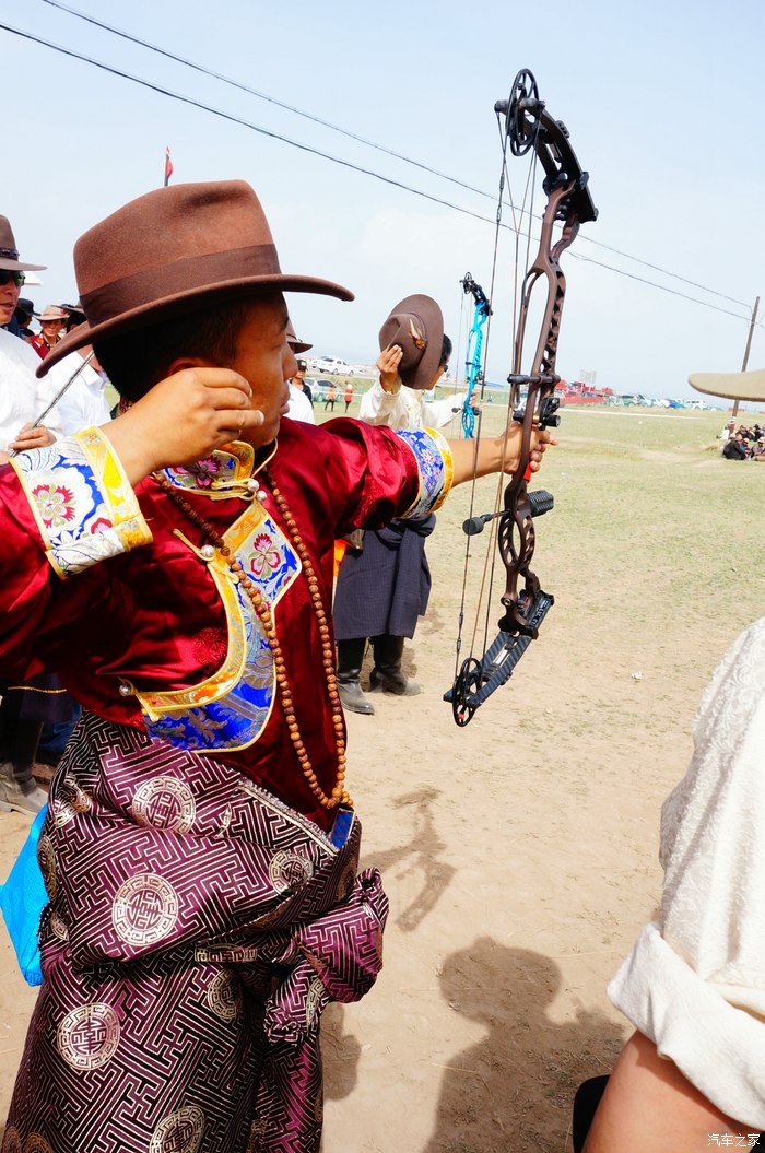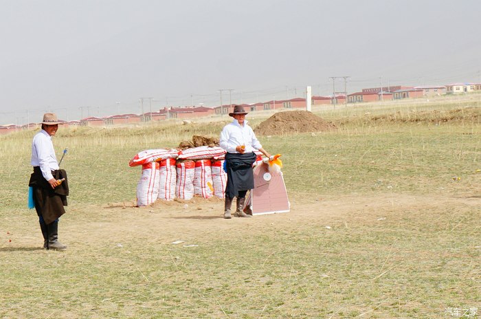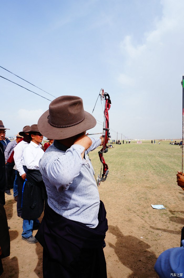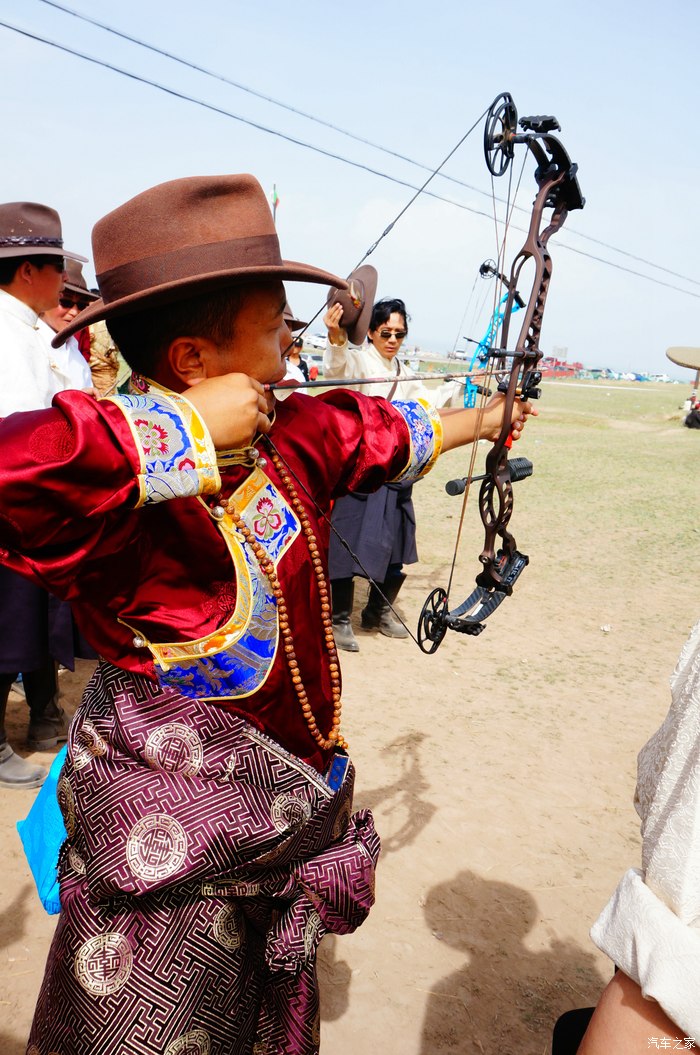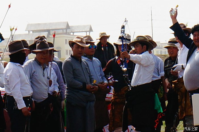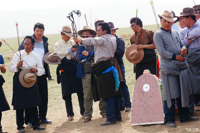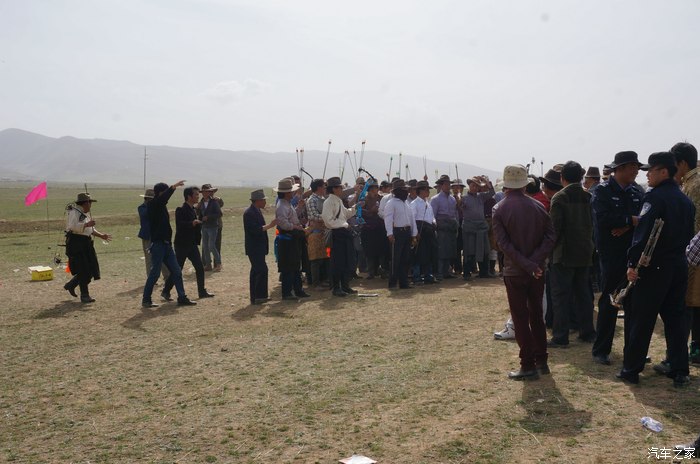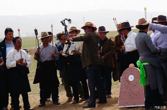 青海湖的路边正在举办藏族一年一度的射箭比赛