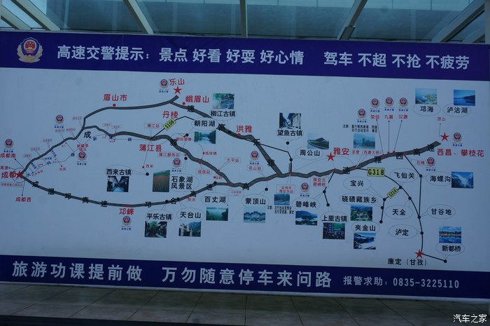 1、G318国道天全——二郎山段修路,太难走,必须高底盘的车才行(斯巴鲁xv离地距离220)。为了绕开这段烂路:雅安——石棉——海螺沟——红石滩——康定。