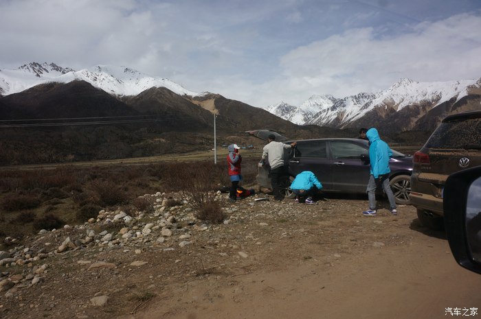 三辆斯巴鲁xv云集在昆仑山上,就是苏州这车上的小伙子帮我加的机油。