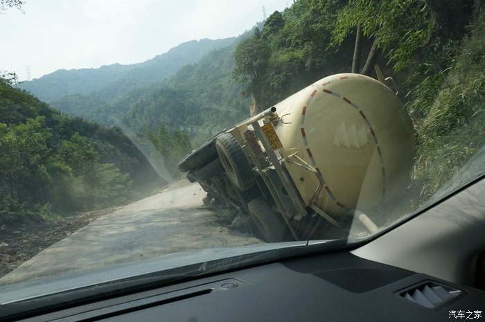 修路,不好走阿。太靠边了翻车了。