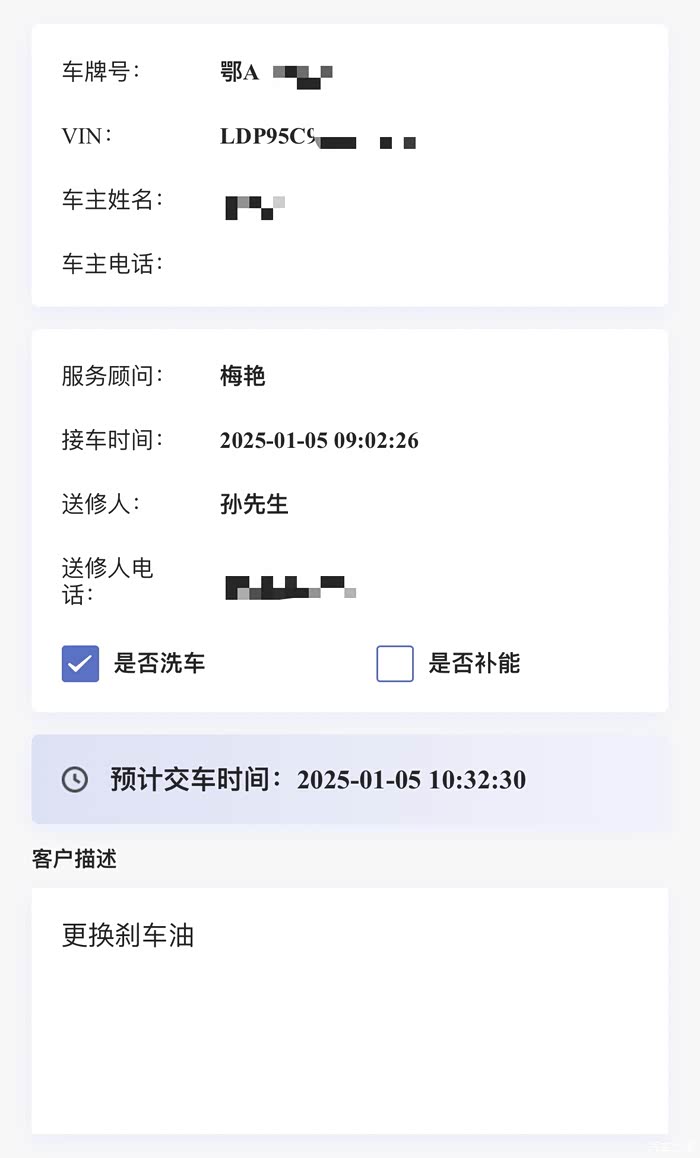 一进门,就被温暖而专业的前台售后梅艳老师热情地迎接我,她的笑容让人感觉很温暖,语气温柔地询问了我的需求,并指引我进行车辆登记和初步检查。