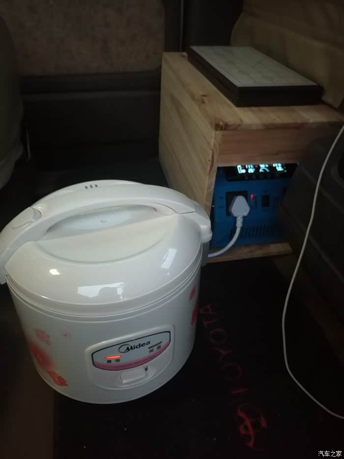 不用盯,饭好了会报警,加开关直接断开。因为是压力锅,所以上高原做饭也没问题。电饭锅功率300W,经过几次出行使用,行车过程中做饭完全没有问题,对电瓶也没有影响。这样的方案优点:改动小、投资少、操作简单、使用方便安全、节约时间。缺点:行车煲汤炖肉满车都是味儿。前年去汉源轿顶山看云海,在九襄打包了一锅黄牛肉,边开车边炖肉蒸饭,接下来一周车里都有牛肉味电压力锅你可以买那种12V和220V两用的电瓶桩头取正极保险管穿线进车内下面那个红色按钮开关就是控制电饭锅的,不能直接控制需加40A以上的继电器,上面那个按钮开关是150W逆变器开关,中间的插座孔就是220V交流输出电饭锅在后备箱,负极搭铁。图中的NF...