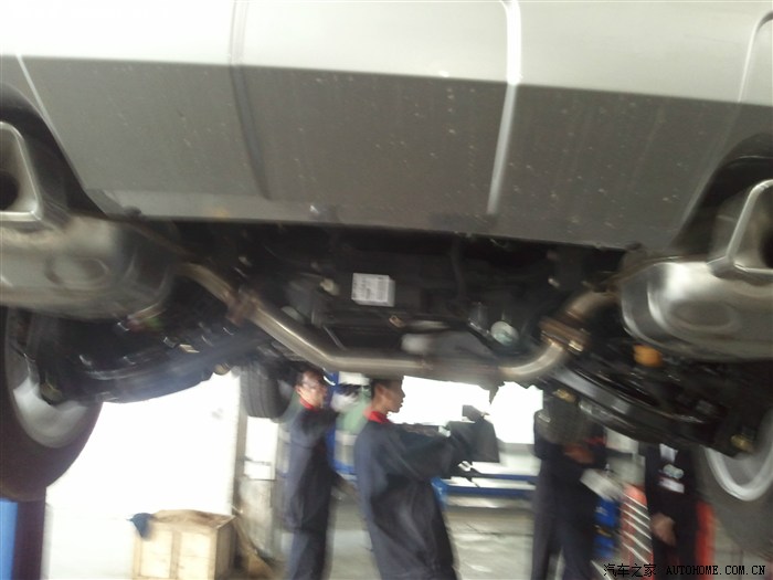 先吊起来装个护板。手机拍的,大家凑合下。因为跟4S的销售主任发飙(原因不说),据说自己掏钱给我装了个发动机护板!