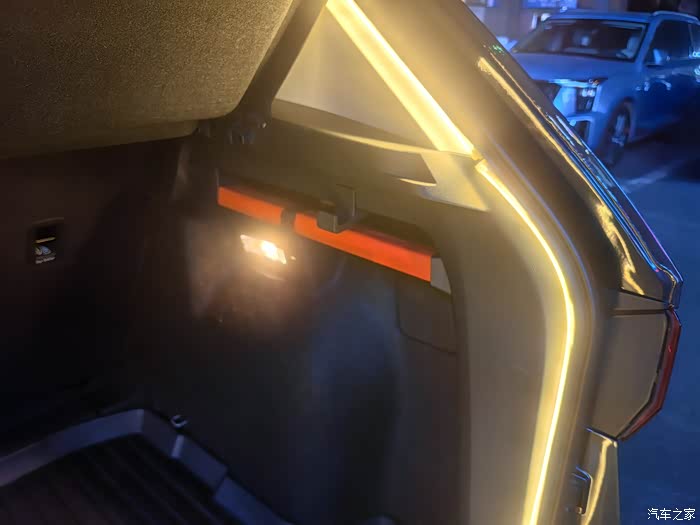 亮度提升:灯带环绕整个后备箱,夜晚开门瞬间点亮,无死角照亮,再也不用摸黑翻找。