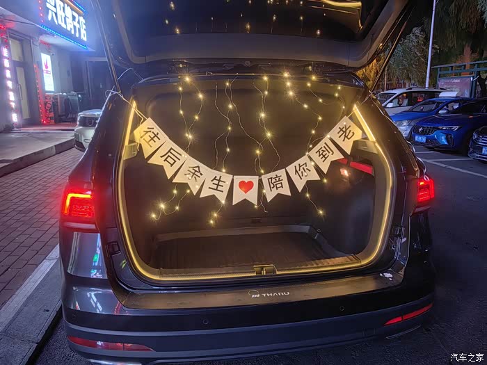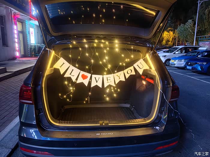 安装好后备箱灯带后的创意装饰:后备箱秒变“浪漫基地”