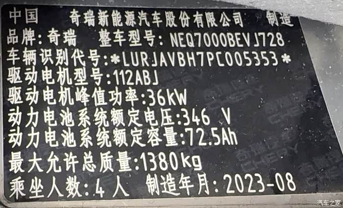 国轩的磷酸铁锂,说多氟多三元锂的都是没好好审题的,18/19款的尾标728的确是多氟多三元锂,36度多的电池容量,这个是23年的25度的,尾标也是728,但是前面是NEQ,老款那个前面是SQR