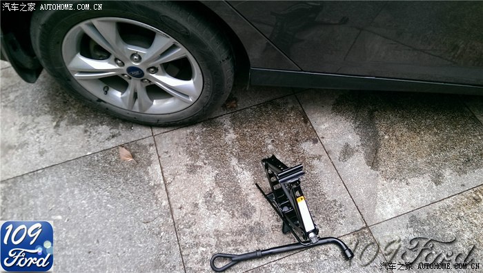 拿出后备箱的补胎工具,把拖车杆跟螺丝扳手组合起来(这个设计好)