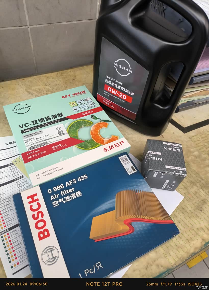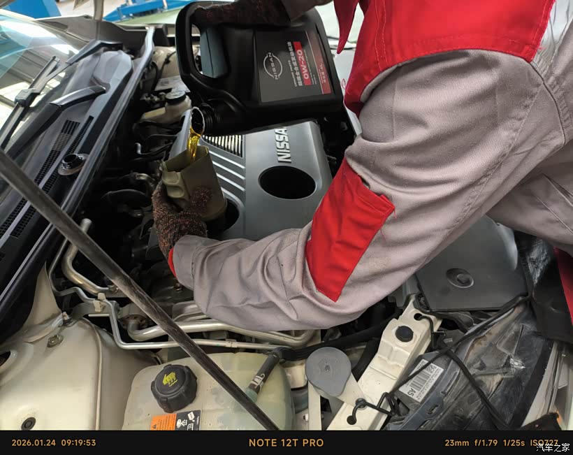 核心保养项目:更换日产原厂0W-20超级全合成机油。这款低粘度机油能确保发动机在寒冬中快速建立油压,减少冷启动磨损,同时优化燃油经济性。同步更换空气滤清器与空调滤清器,保障发动机进气纯净与车内空气质量,这对冬季长时间关窗行车尤为重要。