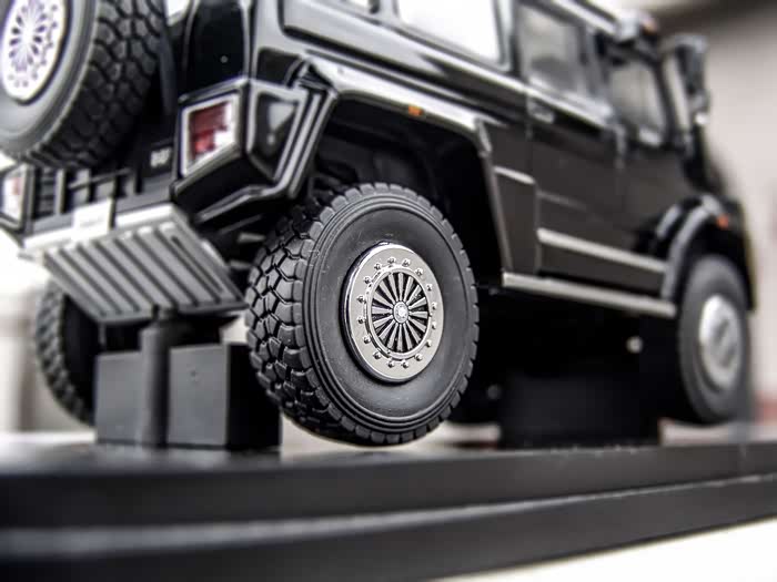 这台奔驰乌尼莫克U5000被改装成了一台“大型SUV”,四只硕大的轮子上顶着一个大盒子,大盒子里面便是驾驶室和座舱,和普通大型SUV一样,里面同样只能容纳7人,舒适性等问题不是我们研究的关键,趁现在,我再和大家简单聊几句模型。