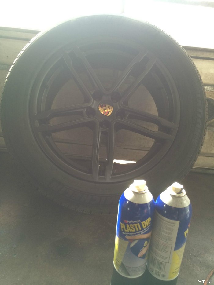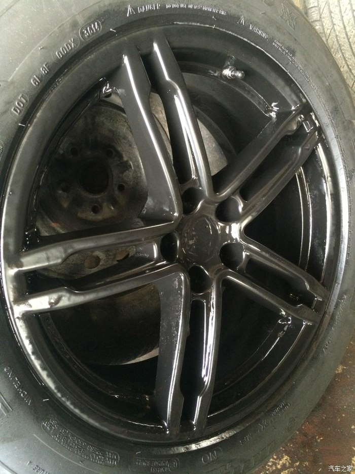 在我这明州的一家华人修理厂弄得,所以还是那句话,楼主我不是什么富二代,除了有强迫症对于买新车方面,其他吃穿住行都是非常节俭的,这个喷轮毂,老美的店着实坑爹,一个轮毂只喷黑要500美金,喷四个卡钳另外收400美金,我都不知道是用金子喷的还是什么,我怎么舍得在老美的店里喷?。。。。。。。所以找了一个月才从朋友那里得知这华人汽车修理厂。 喷的漆是用的名字叫plasti dip(塑料油漆的意思吧),就是可撕漆,喷上去等它干了之后,就是一层硬度,柔韧性非常好的塑料覆盖在轮毂上,但是一定要在夏天,就是天气热的时候喷效果才会好,要不然太冷了的话喷出来和鼻涕特别像!! !! 当时是冬天,所以 整个过程人工费一共280美金,一瓶漆7美元,可以完整的喷一个轮毂,一共耗费6瓶漆(漆是老板出,我又省钱了~~~~~~),这个价钱和国内我认为差不多了,毕竟确实用了一天才搞定,美帝本来的人工费也就贵一点。。。。。。。。。。