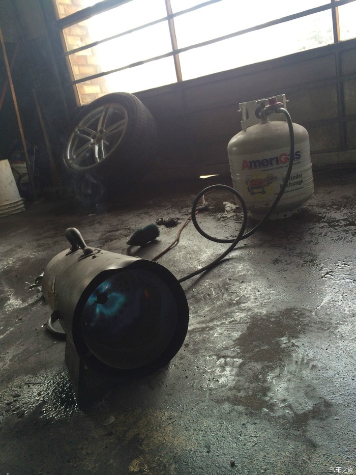 因为太冷,所以老板直接给上神器了~~~~~煤气罐+烘干机,多么牛逼的组合!